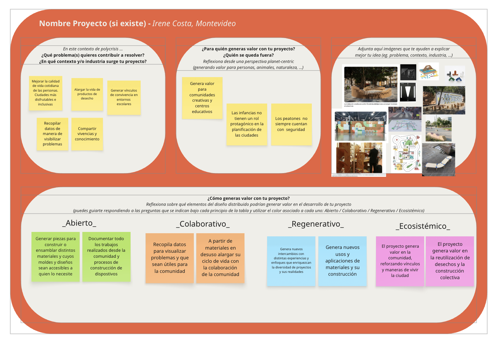 Con estas referencias, se planteó el siguiente ejercicio. Preguntarnos ¿qué valor de diseño aportan nuestros proyectos?, ¿qué aportarán a la comunidad?, ¿de qué manera se puede trabajar pensando en un diseño distribuido y con innovación abierta?
