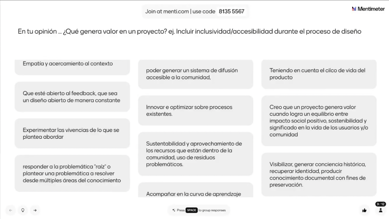 - Generación de valor, la pregunta disparadora fue, ¿Qué genera valor en un proyecto?