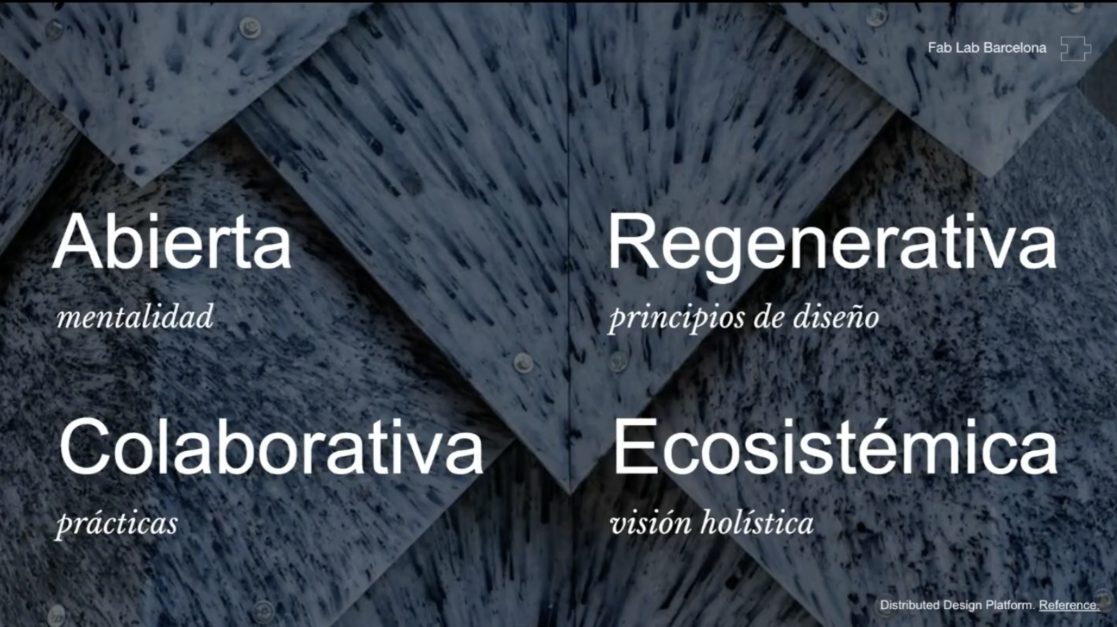 Surgieron muchos conceptos de lo que es generar valor pensando en el usuario, en sistemas innovadores y sustentables, accesibles y de fácil comunicación. Como ejemplo vimos Fiction Factory que es una empresa que reutiliza desechos de cortes en CNC, alargando la vida de esos desechos y generando productos con una nueva personalidad y de manera colectiva por medio de plataformas digitales. Esto nos introdujo al mundo del Open Source. - Innovación Abierta Consta de tres principios que la definen: Transparente, Replicable y Accesible