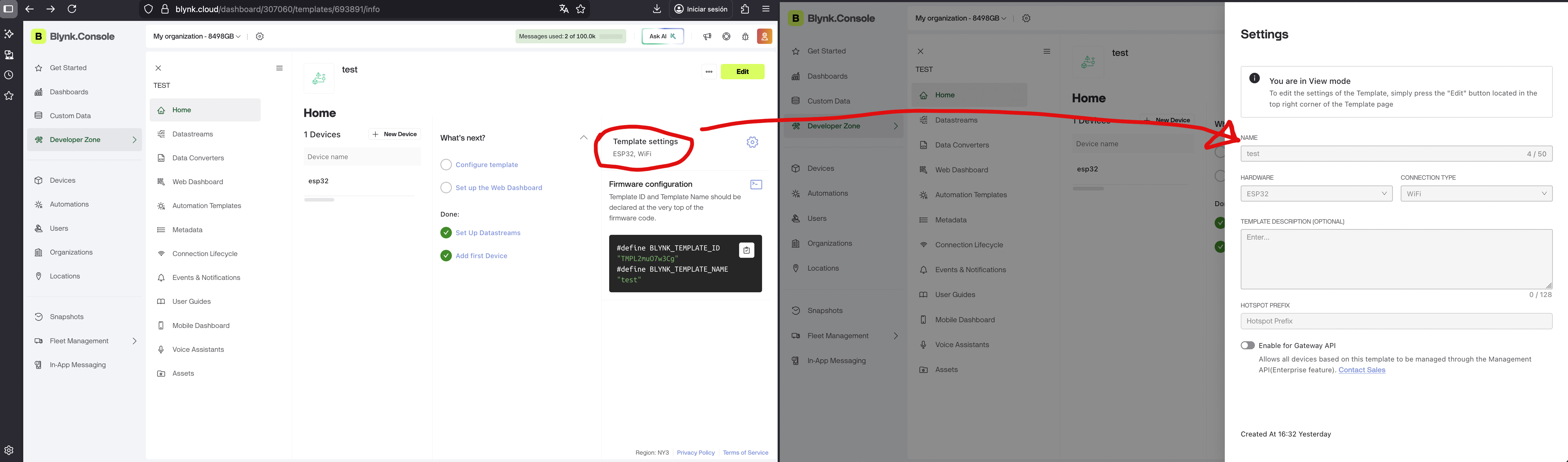 Una vez dentro de Devices: 1. Toca “New Device” (o “+”) 2. Elige: 👉 From Template 3. Selecciona el template que hiciste (ej: “LED ESP32”) TEST en mi caso 4. Dale OK