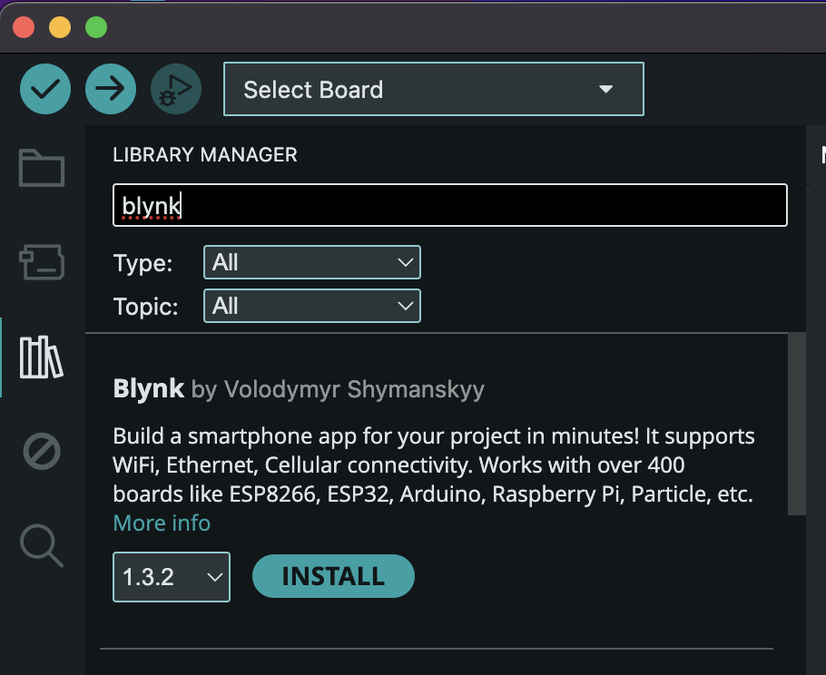 - Arduino Luego que configuré Blynk abro Arduino para ejecutar las órdenes. Como ya he trabajado con el ESP32 en Arduino, voy a herramientas/placa y veo que ya lo tengo instalado y Arduino lo reconoce.