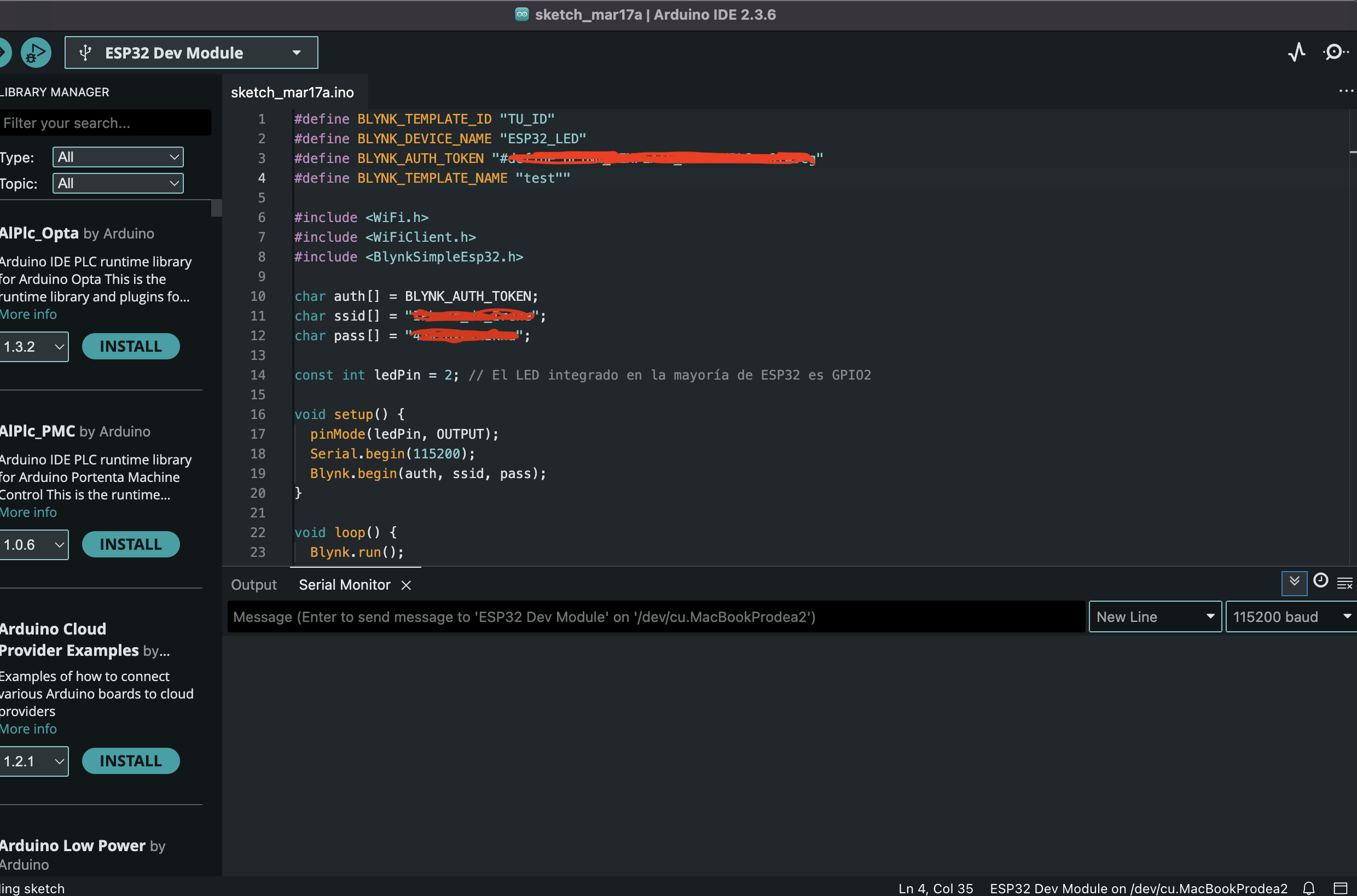 Copio el código que me sugirió el chat GPT. Debo rempalzar mi auth_token, wifi y password.